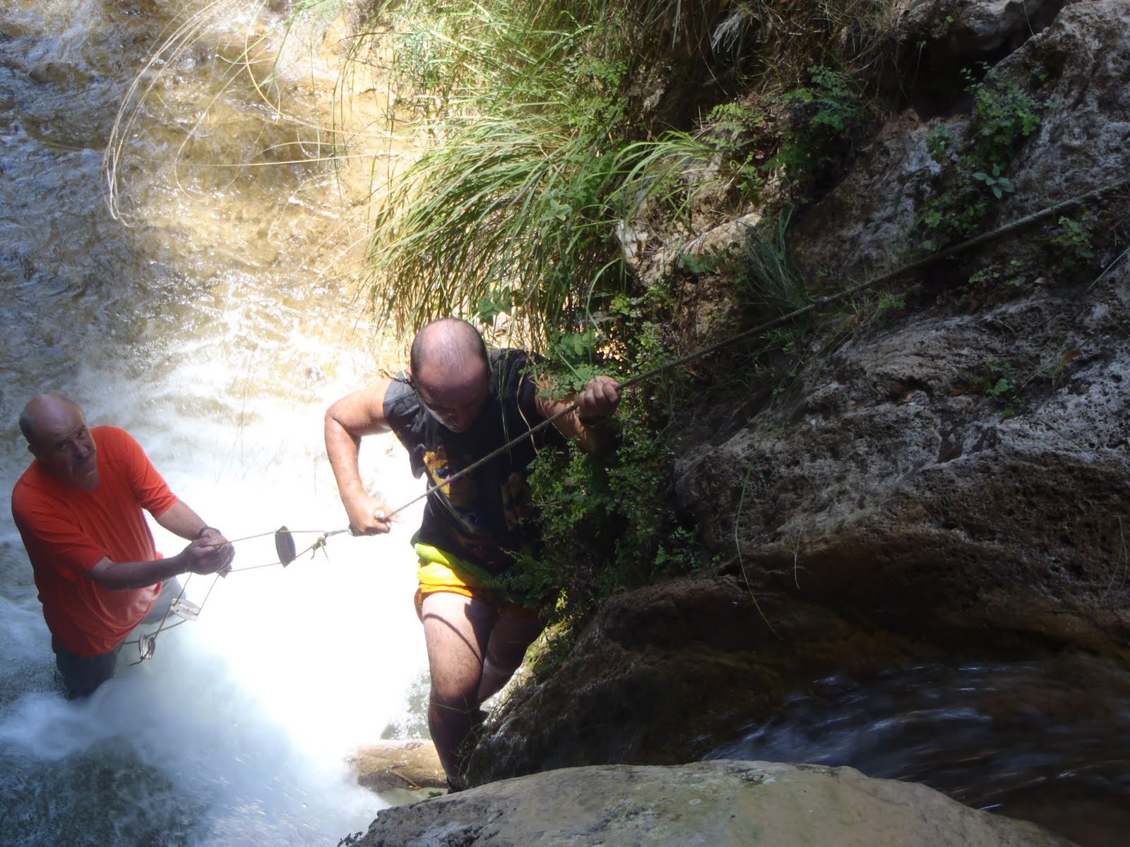 Ahora tocaba el descenso, Valentín fue el ultimo en bajar, pero se quedo trabada la cuerda, y no podíamos recuperarla, asi que volvió a subir por la cuerda, soltarla un poco, y volver a bajar. Por algo es el Rey de la Montaña.